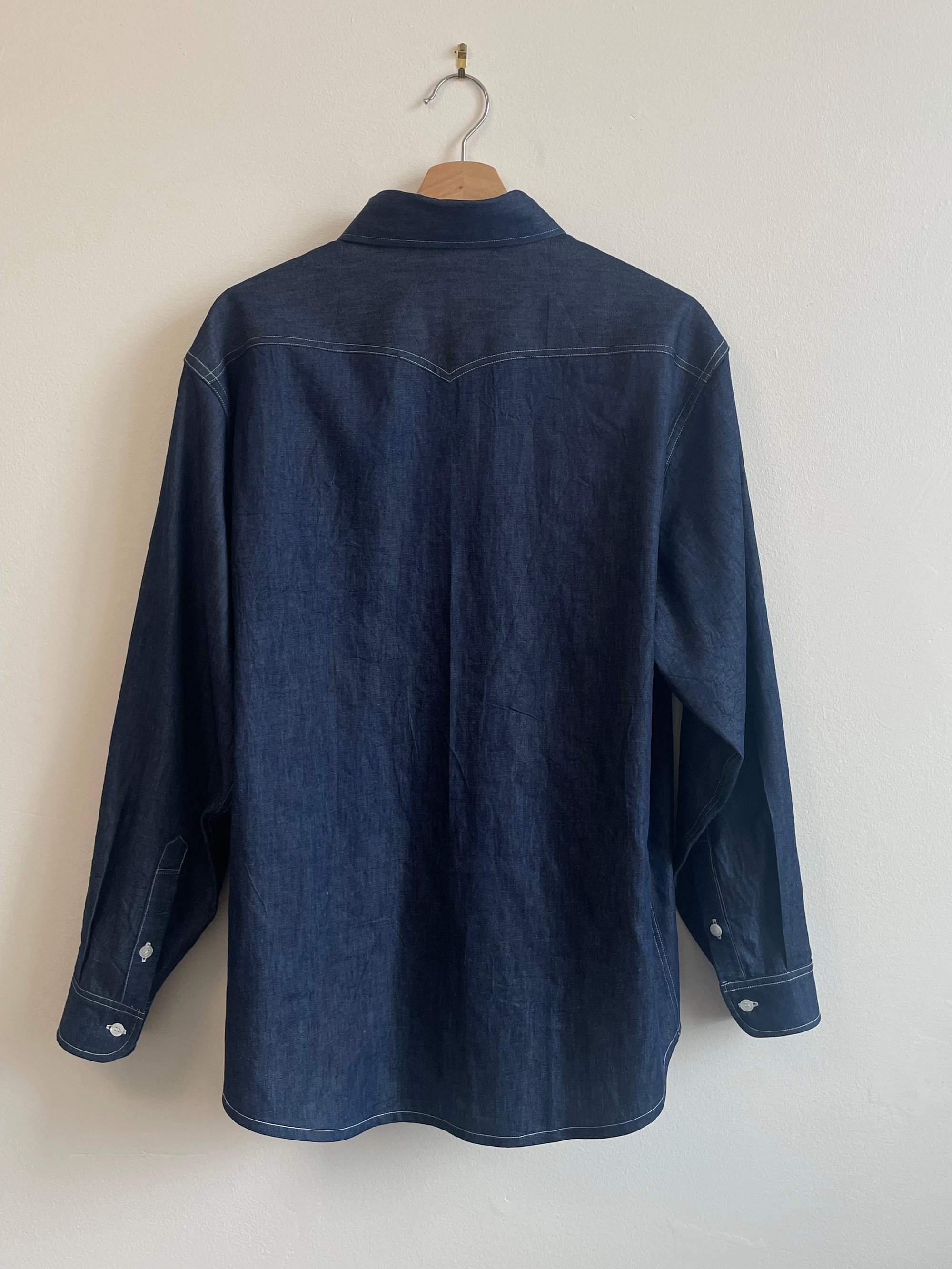 The Serge Shirt is inspired by the style icon, Serge Gainsbourg, and his love for Americana western wear. In his latter years he would rarely be seen out of his chambray shirt. Originally designed for actor and musician, Joe Keery for his world tour, I wanted to make a shirt that captured the timeless style of Serge.